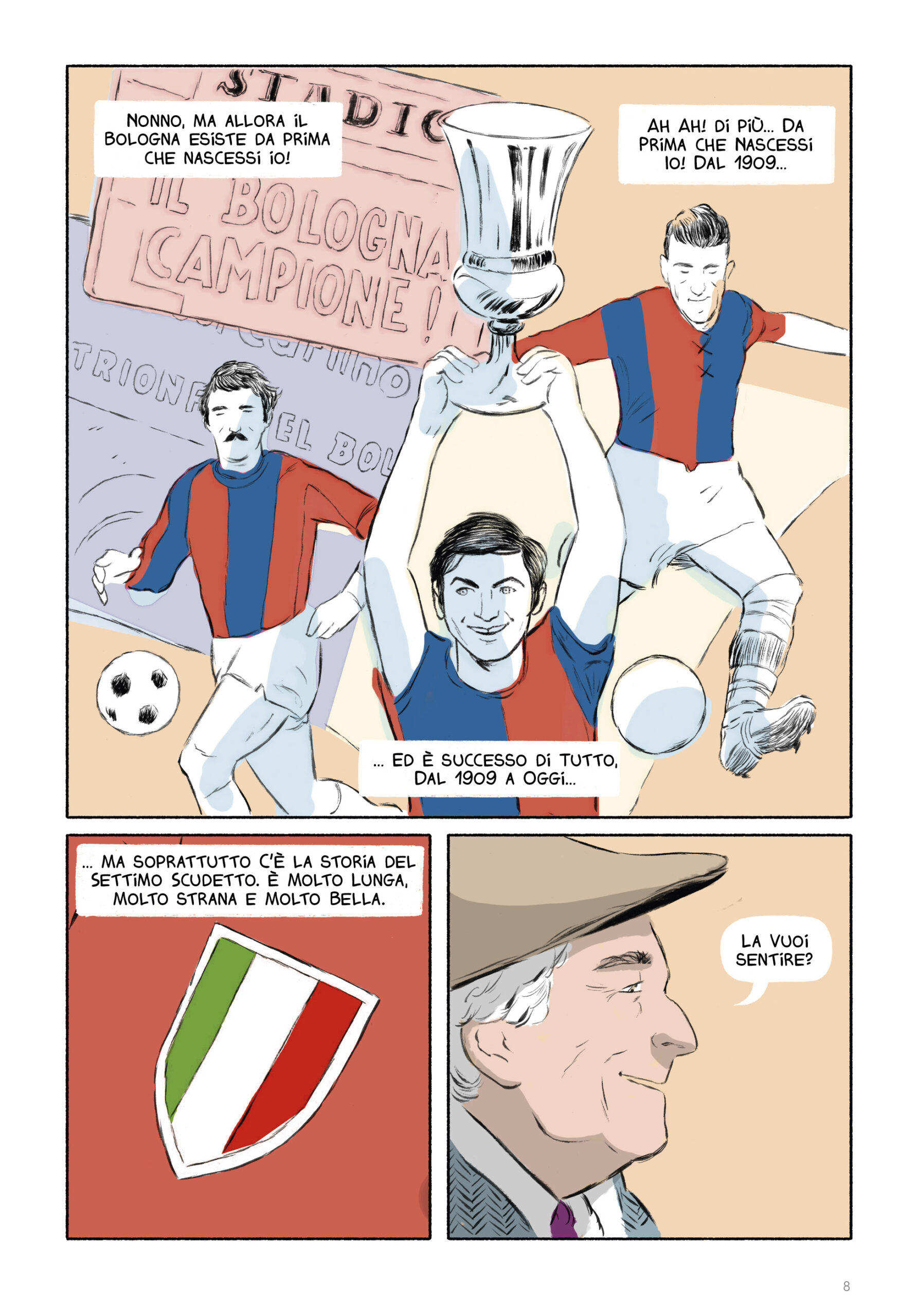 Dall'album dei ricordi, una pagina indimenticabile nella storia del Bologna FC e dello sport. 9970 edizioni presenta il racconto a fumetti della storia incredibile del settimo scudetto del Bologna (1964). Gesti sportivi, colpi di scena, sfide al cardiopalma, intrighi e misteri da thriller autentico.